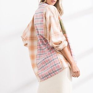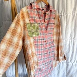 OVERSIZED!! Fits up to large! Stylish plaid button down shirt. Features pink and green tones. Perfect for casual wear.