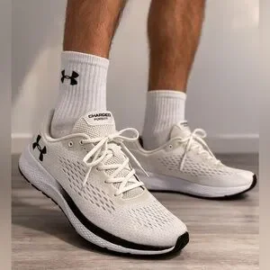 Lightweight and comfortable performance running shoes featuring Under Armour’s Charged Cushioning® midsole for responsive comfort and all-day wear. Clean, versatile white colorway works great for running, gym workouts, walking, or everyday casual use.