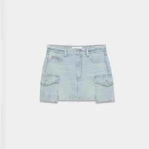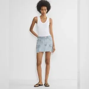 Inspired by vintage streetwear, The '90s Cargo is a classic mini with timeless denim detailing and a hemline designed to hit at the upper thigh. It's cut from heavyweight non-stretch denim that molds to your body over time. This fabric is sourced from a premier Italian mill and made with 100% regenagri-certified regenerative cotton. This version comes in a light indigo wash.