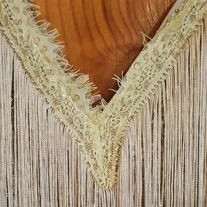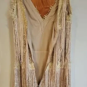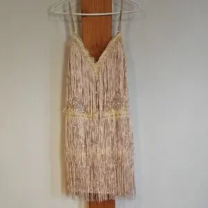 Gold and Cream Fringe Mini Flapper 40s Style Evening Dress