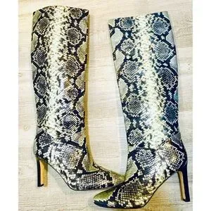 Marc Fisher LTD Stylish Spike heeled knee--high boots with a bold Python snakeskin pattern. Perfect for a chic look.