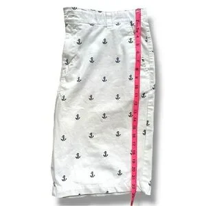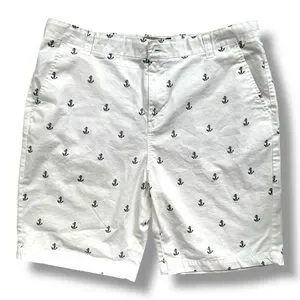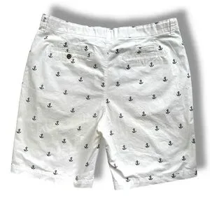 Stylish white shorts featuring a nautical anchor print. Perfect for casual outings and beach days.