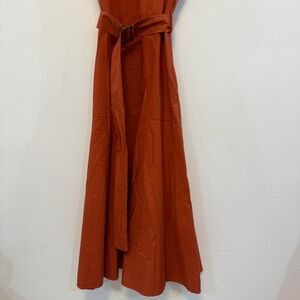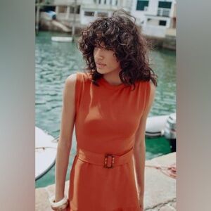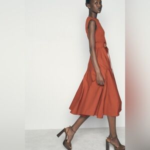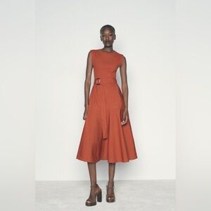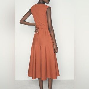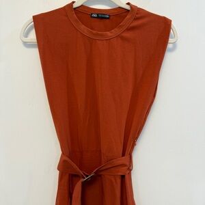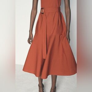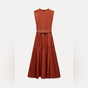 ZARA | A-line contrast rust colored belted midi dress