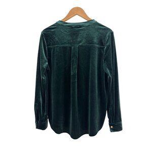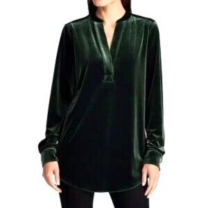 Ralph Lauren Dark Green Velvet Stretch Tunic Top Blouse Shirt Size L Velour