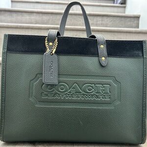 Coach Dark Green and Black Leather Tote