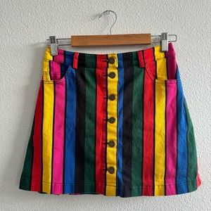 Lazy Oaf Stripy Button Skirt Rainbow Mini Button Front Colorful Stripes Multi
