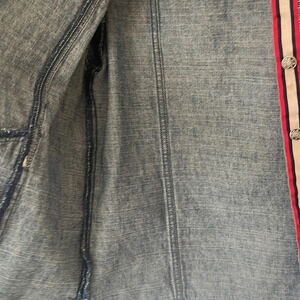 Another great denim jacket from my personal closet. Size 6M - measurements in photos. Small stain on the red/White stripe-see last photo