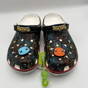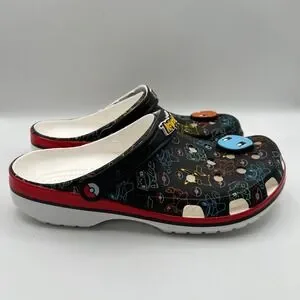 Crocs Pokemon Classic Clog Mens sz 11 Black Multi Color Character Print Jibbitz