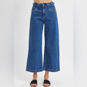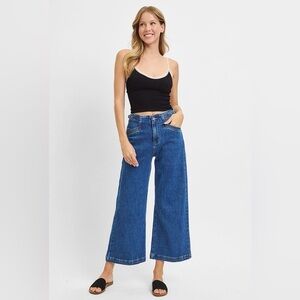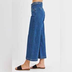 High Rise Crop Wide Leg Jeans – Adjustable Waistband | Dark Wash Denim