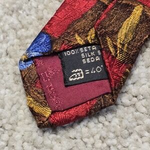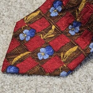 Ermenegildo Zegna Silk Tie Red Brown Plaid Floral Blue Italy Luxury Necktie