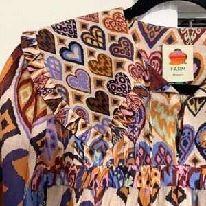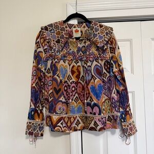 FARM Rio Heart Design Long Sleeve Blouse Peter Pan Collar Size Small, NWT
