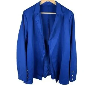 Women's Blazer Jacket Business Suit Coat Lapel Long Sleeve Solid Royal Blue Sz XXL Plus