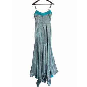 Sherri Hill Blue Silver Glitter Mermaid Gown Size 8 Prom Homecoming Turquoise