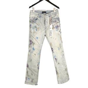 NWT Purple Brand P004 Bootcut Super Light Indigo With Paint Jean
