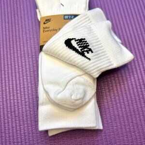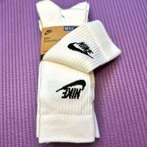 Nike Everyday Men's Size 8-12 L Cushion 3 Pairs Crew White Swoosh Retro Athletic