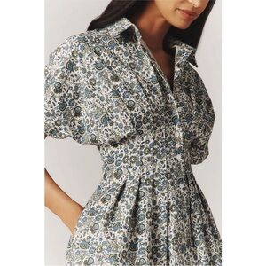 NWOT Anthropologie The Tobie Mini Shirt Dress by Exquise- Tailored to perfection, the Tobie Shirt Dress is on top of everyone’s mind – with its classic collar, exaggerated sleeves, and waist-defining pleats.