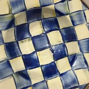 Elegant McKenzie Childs bowl with a blue and cream checkered pattern. Perfect for enhancing any space.