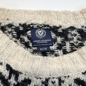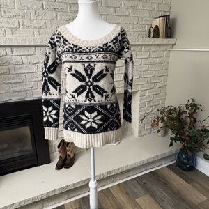American Eagle Outfitters Black and Cream Snowflake Wool Blend Sweater Size S/M