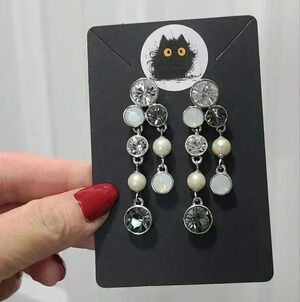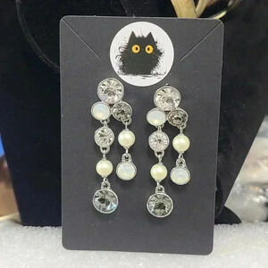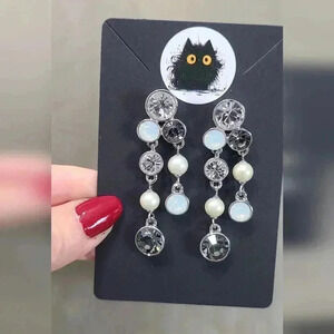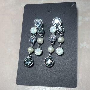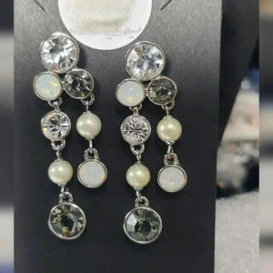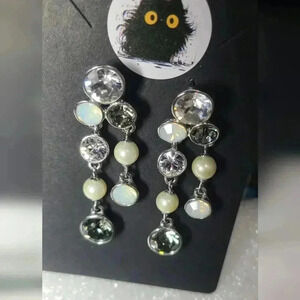 Givenchy crystal fuax opal pearl drop earrings slivertone stud earrings