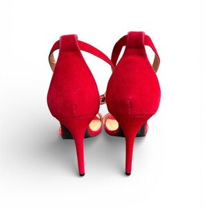 Step out in style with these elegant red stiletto heels by Lulu’s. Perfect for any occasion, these shoes offer both comfort and sophistication. Heel height about 5”. Preowned but in like-new condition. Stunning beauty!