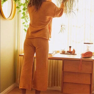 New Free People Hailee Sweater Set Matching Two Piece Pants in Orange