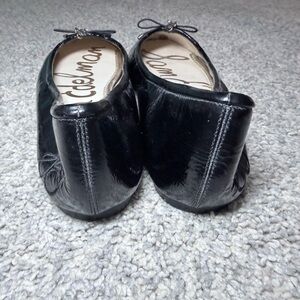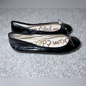 Sam Edelman Felicia Black Patent Leather Ballet Flats Bow Logo Size 11