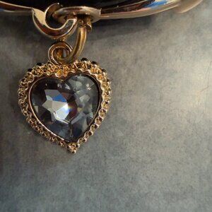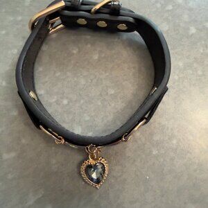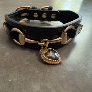 Pet Care Black Faux Leather Dog Collar with Crystal Heart Charm – Size Small