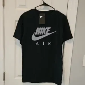 Stylish black Nike t-shirt featuring a bold white logo. Ideal for everyday wear.