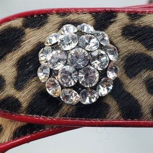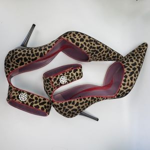 Baldan Fur Leopard Stiletto w/ Ankle Strap and Rhinstones - Mobwife 39/8.5