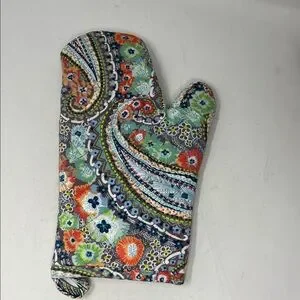 New without tags set of kitchen oven mit and pot holder from Vera Bradley. This is the quilted Citrus Paisley pattern from spring 2022 collection. 100% polyester.