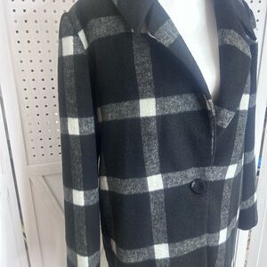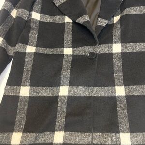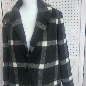 Chic plaid blazer with a bold black and white pattern. Perfect for layering and adding style to any outfit.
