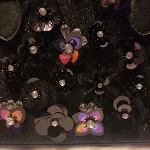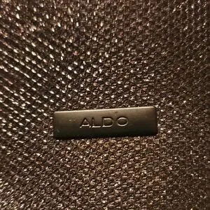 This is a stylish Aldo handbag featuring a intricate floral embellishments on a textured black surface.The bag is designed with a structured silhouette and duel handles, perfect for adding a touch of elegance to any outfit.