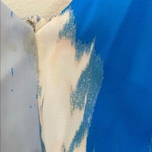 Chelsea28 blue watercolor floral print dress 8, preowned, stain at the top front of dress included in pictures, V-neck, spaghetti straps, 100% polyester, backup closure, lined