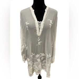 Johnny Was Ellie Long Sleeve White Floral Blouse- Small