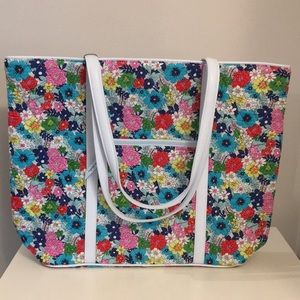 Vera Bradley Far Out Floral Trimmed Vera Tote Bag