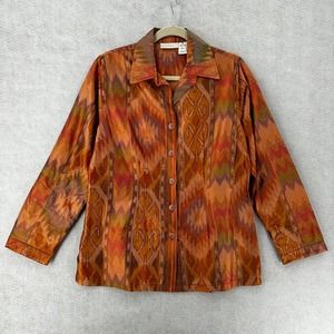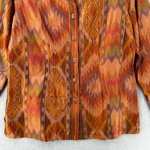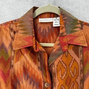 Soft Surroundings Top Womens MEDIUM Aztec Print Tribal Boho Long Sleeve Button