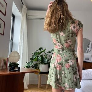 Reformation Green Floral Mini Dress
