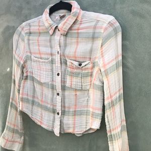 Free People Plaid Cotton Crop Shirt