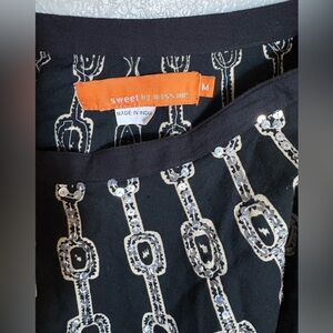 Miss Me - Black and Cream A-Line Silver Sequins Skirt
