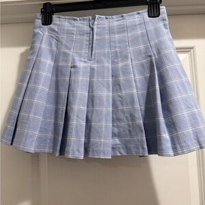 Chic skater skirt with a light blue plaid pattern. Perfect for casual outings.