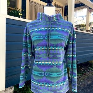 🏔️1990s Aztec graphic high neck tie sweatshirt~lightweight breathable~perfect for hiking, ski slopes, or adding that retro pop to a outfit, chilly night on the beach~Super cute with high waisted jeans tucked in and bagged out