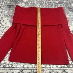 Leith Red Off Shoulder Foldover Rib Knit Sweater Top Women’s Size S