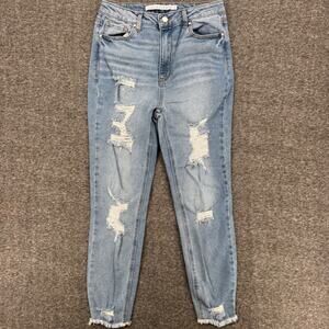 Tinseltown Womens High Rise Distressed Skinny Jeans Light Wash Blue Size 11