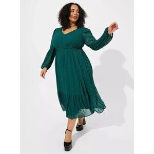 Torrid Tea Length Midi Clip Dot Dress Size 3X 22/24 Green Open Back A-Line Pockets 2023