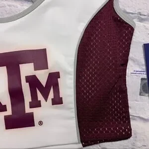 Cheer Texas A&M on in this colorful fitted crop tank with mesh side panels and crisscross straps in the back.