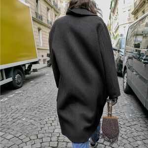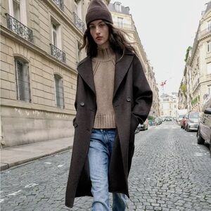 New Zara long double-breasted wool coat in brown - large