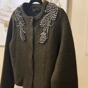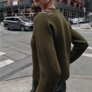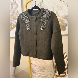 Zara Beaded Shoulder Cardigan Hunter Green Small NWT Silver Embellished Sweater