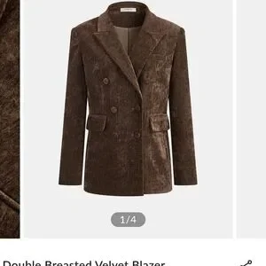 Luxurious chocolate velvet blazer. Double-breasted design. Perfect for a sophisticated look.
