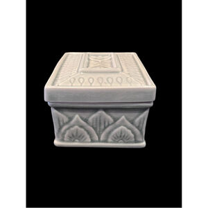 Vintage Lotus Flower Ceramic Gray Green Treasure Box Memory Box Jewelry Box