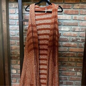 Free people Sz M floor length sweater cardigan sleeveless pockets wool blend